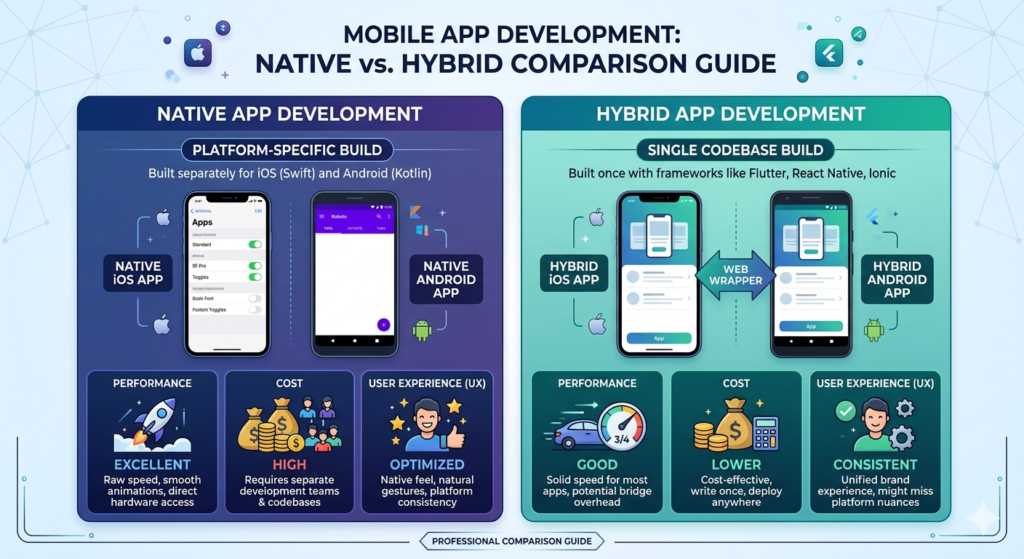 In 2026, app development continues to evolve with new tools, frameworks, and market demands. Understanding the differences between hybrid and native apps is crucial for businesses that want to provide the best user experience (UX), performance, and scalability.